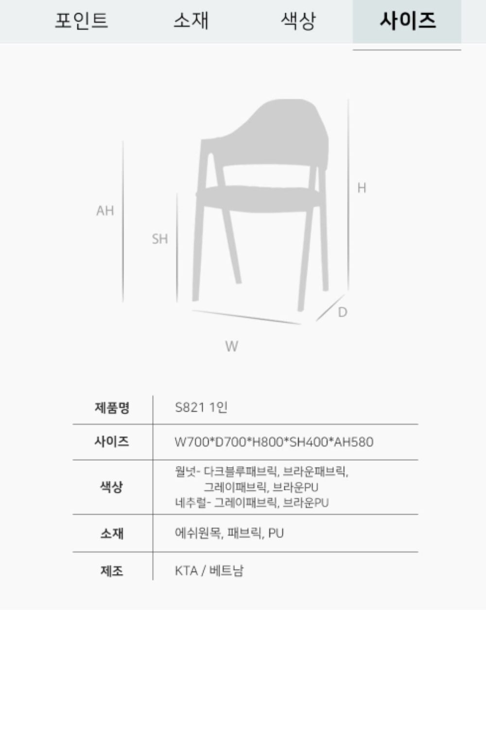 821 1인 패브릭 소파