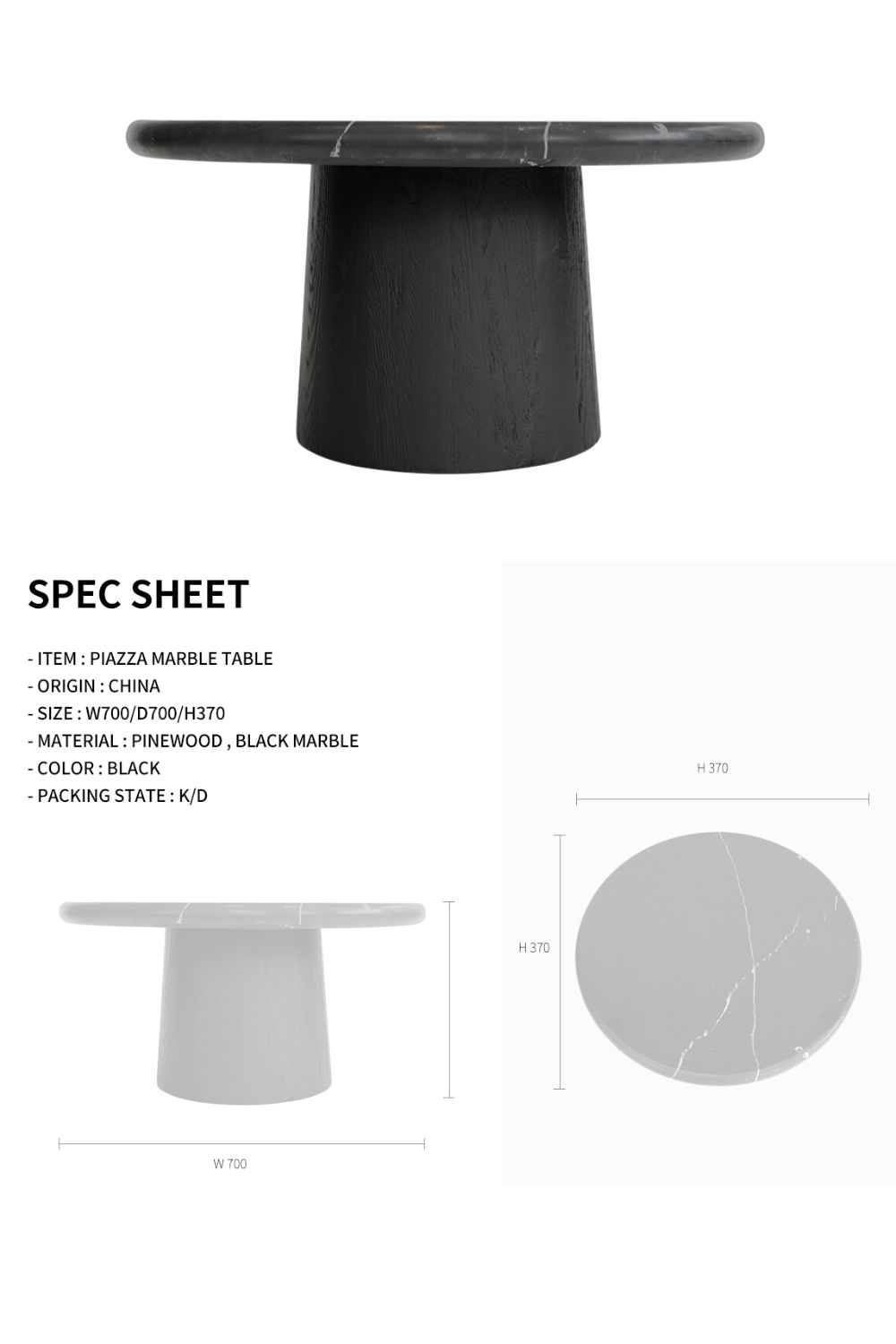 상판 사이즈 : 700파이 h,370