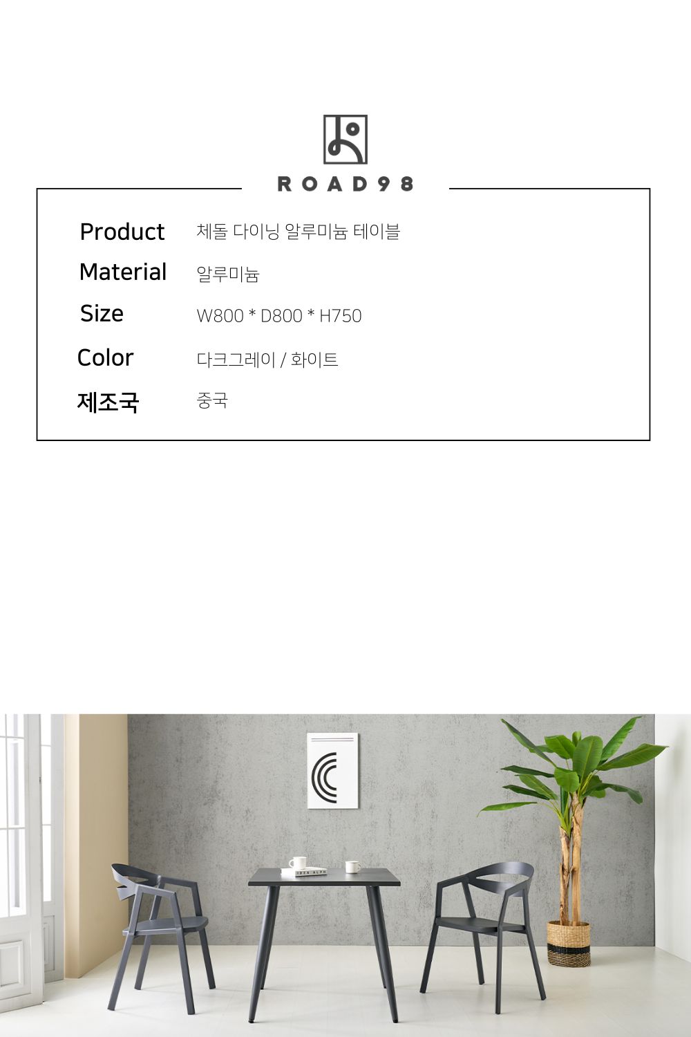 체돌 다이닝 알루미늄 테이블 다크그레이