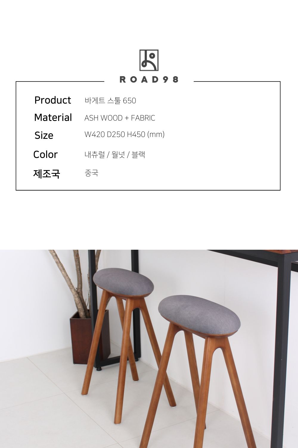 바게트 스툴 650 내츄럴