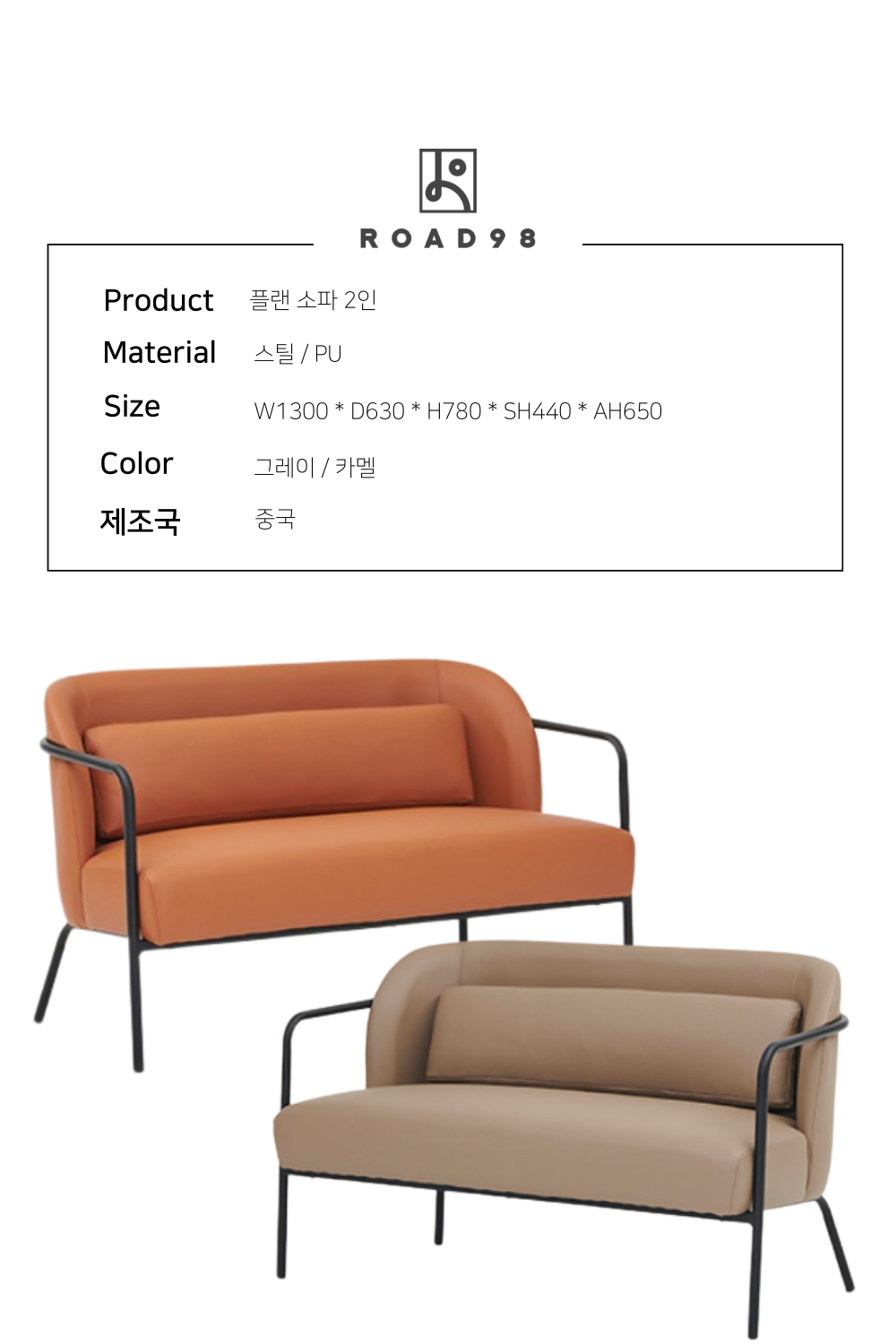플랜 소파 2인 그레이