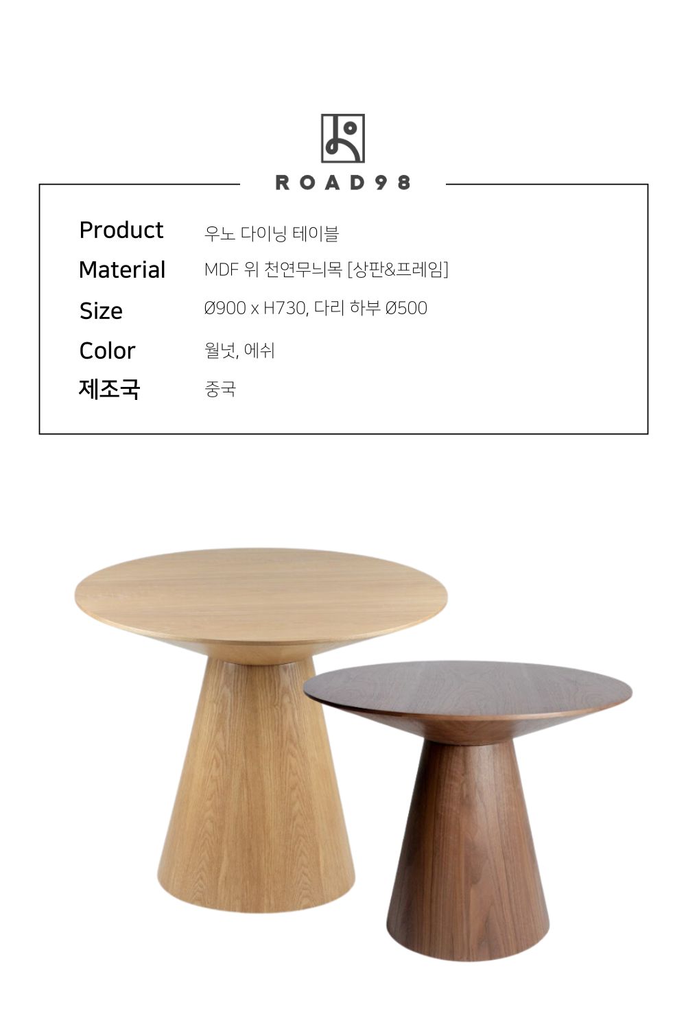 상판 사이즈 : 900파이 x h.730 (mm)