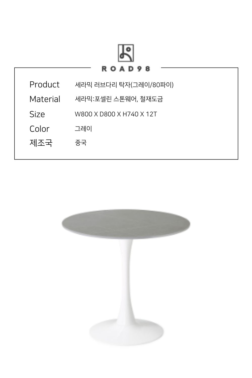 상판 사이즈 : 800파이 h,740 (mm) 12t