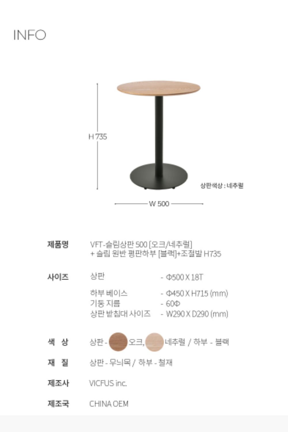 상판 사이즈 : 500파이 h,715 (mm) 18t
