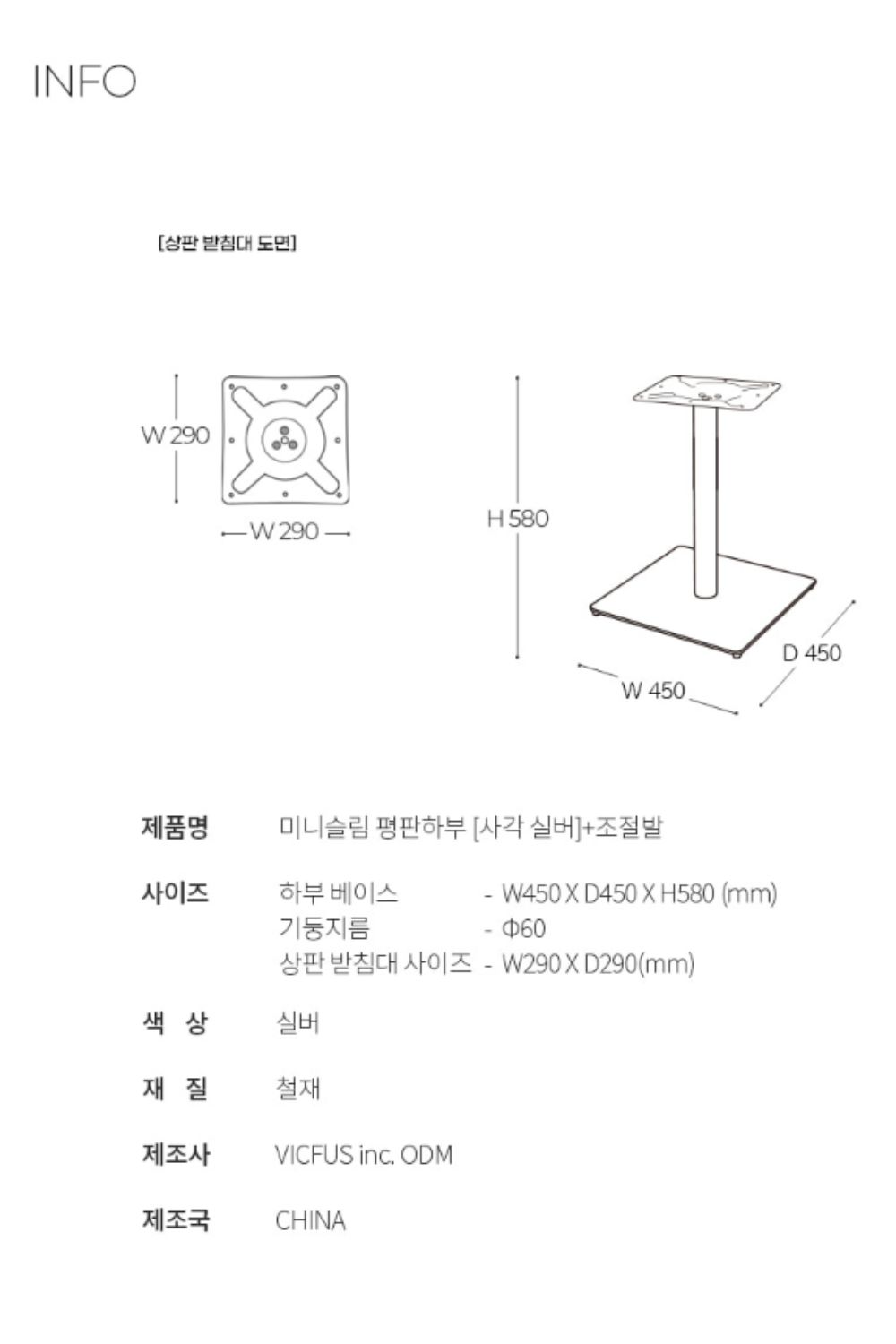 미니슬림 평판하부 사각 실버 + 조절발