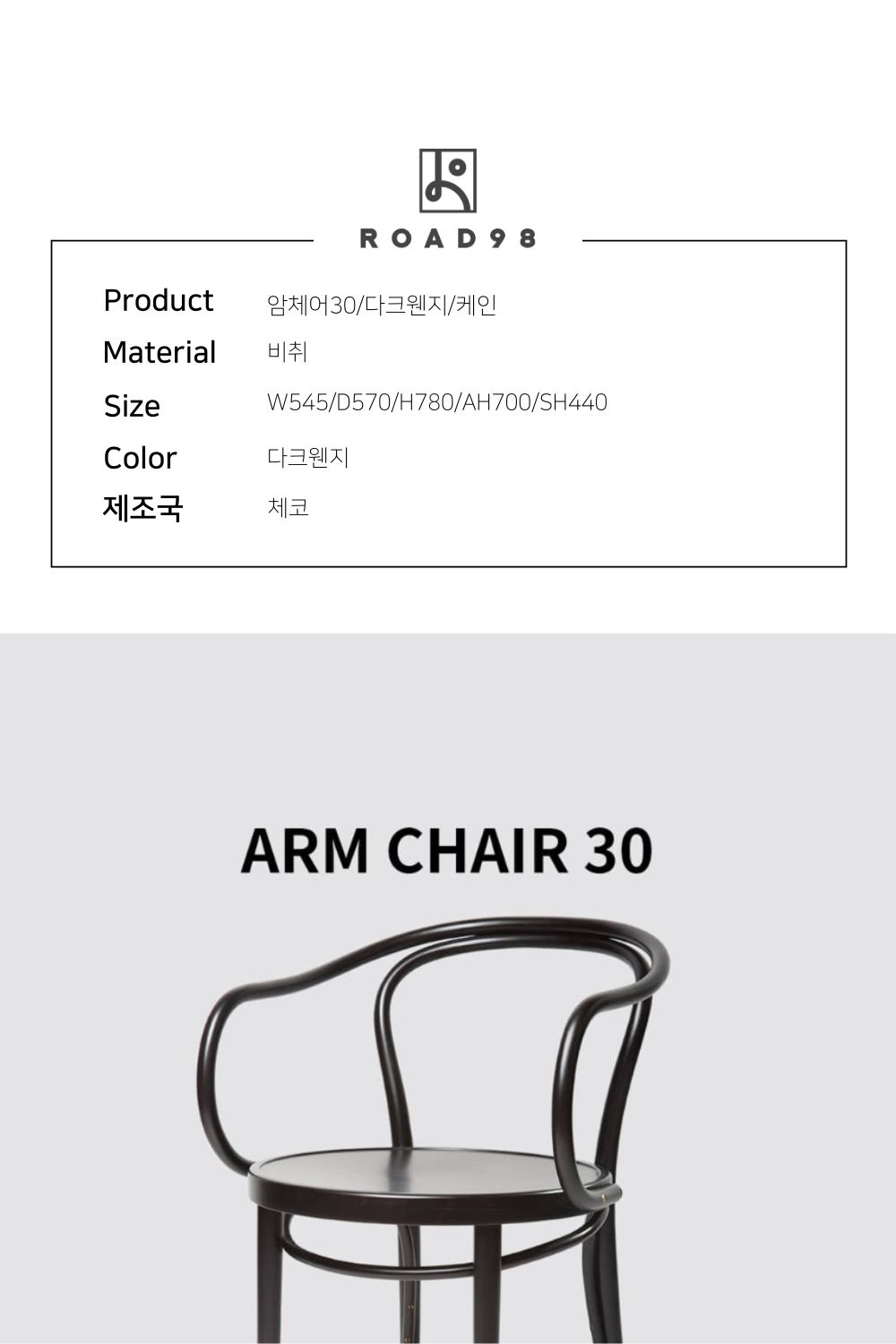 Ton체어 30 암체어 다크웬지 케인